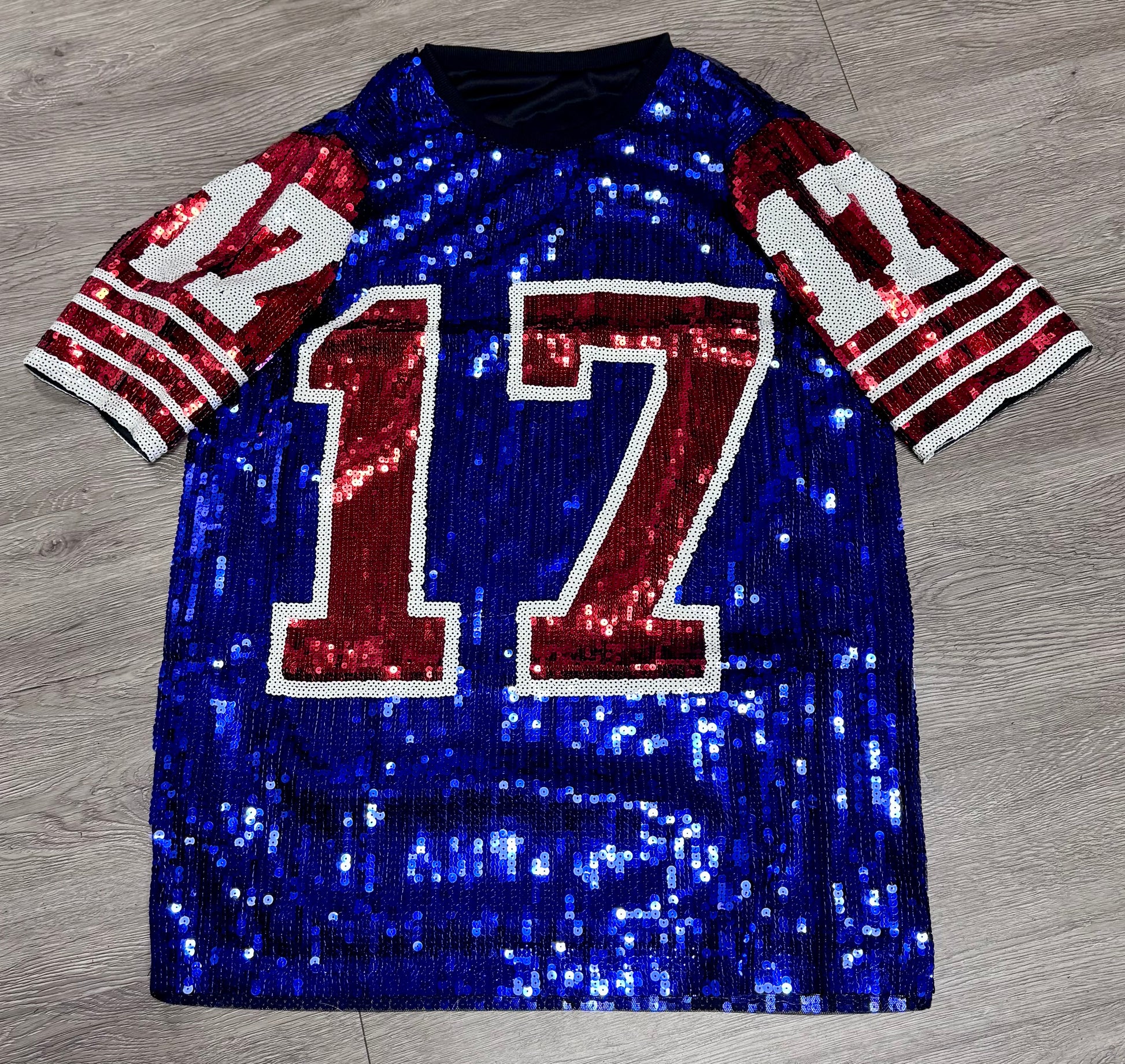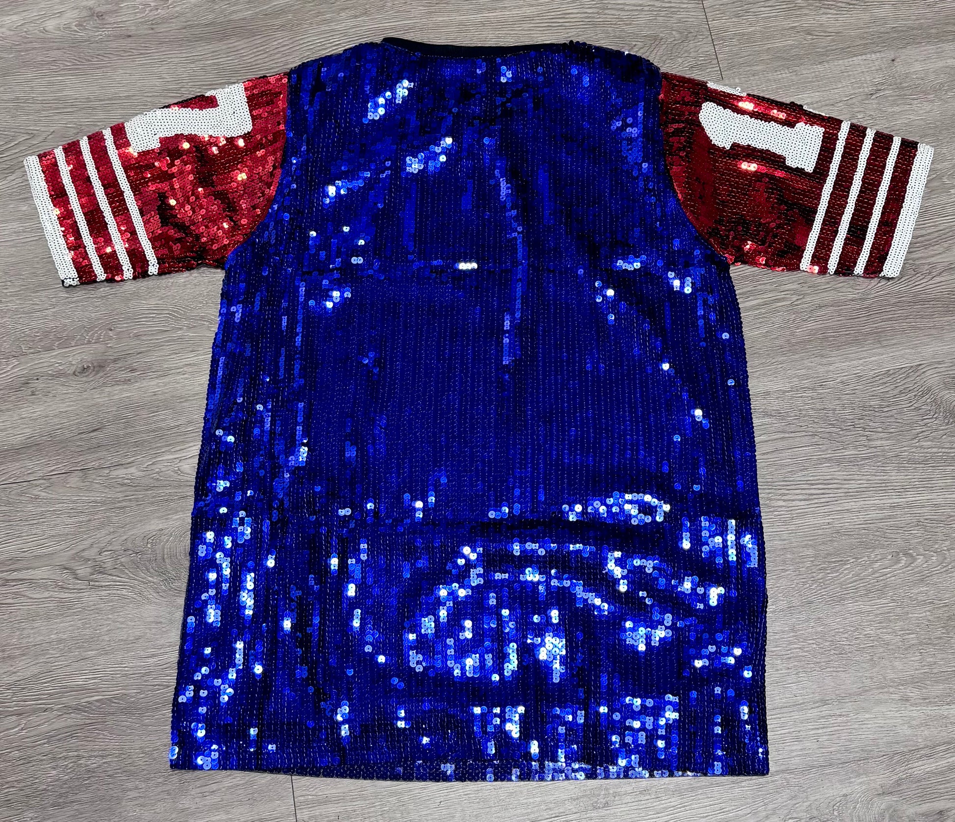 Buffalo Sequin Jersey Dress: Blue & Red Game Day, New York Attire