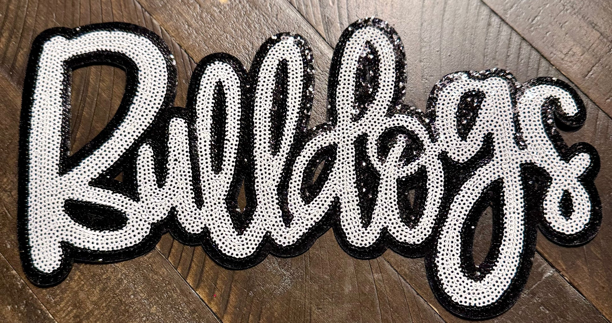 Bulldogs Patch, Sequin Patch, White Bulldogs Patch, Black Glitter Backing, Iron On Patch, Game Day Patch, Mascot Patch, DIY Patch