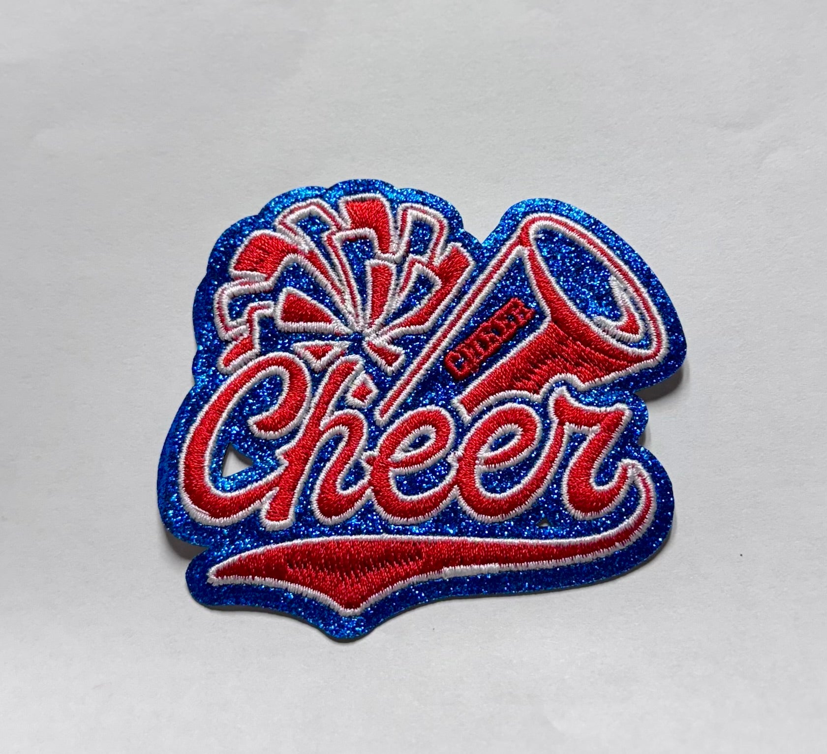Cheer Embroidered Glitter Patch: Iron-On DIY Applique (3.5 inch)