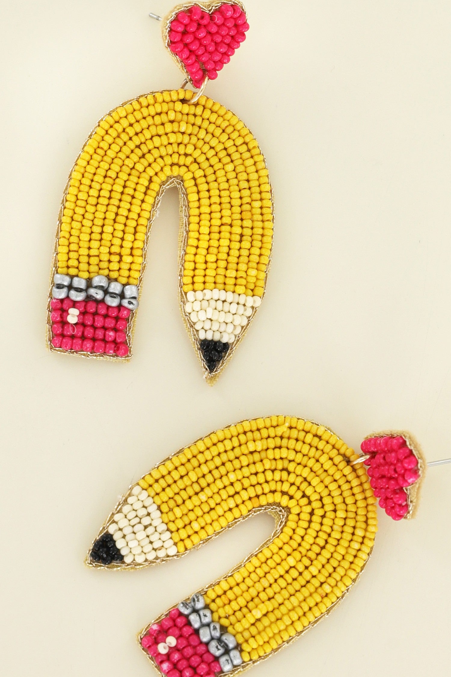 CURVED PENCIL HEART POST BEADED EMBROIDERY HANDMADE NOVELTY DANGLE AND DROP EARRINGS