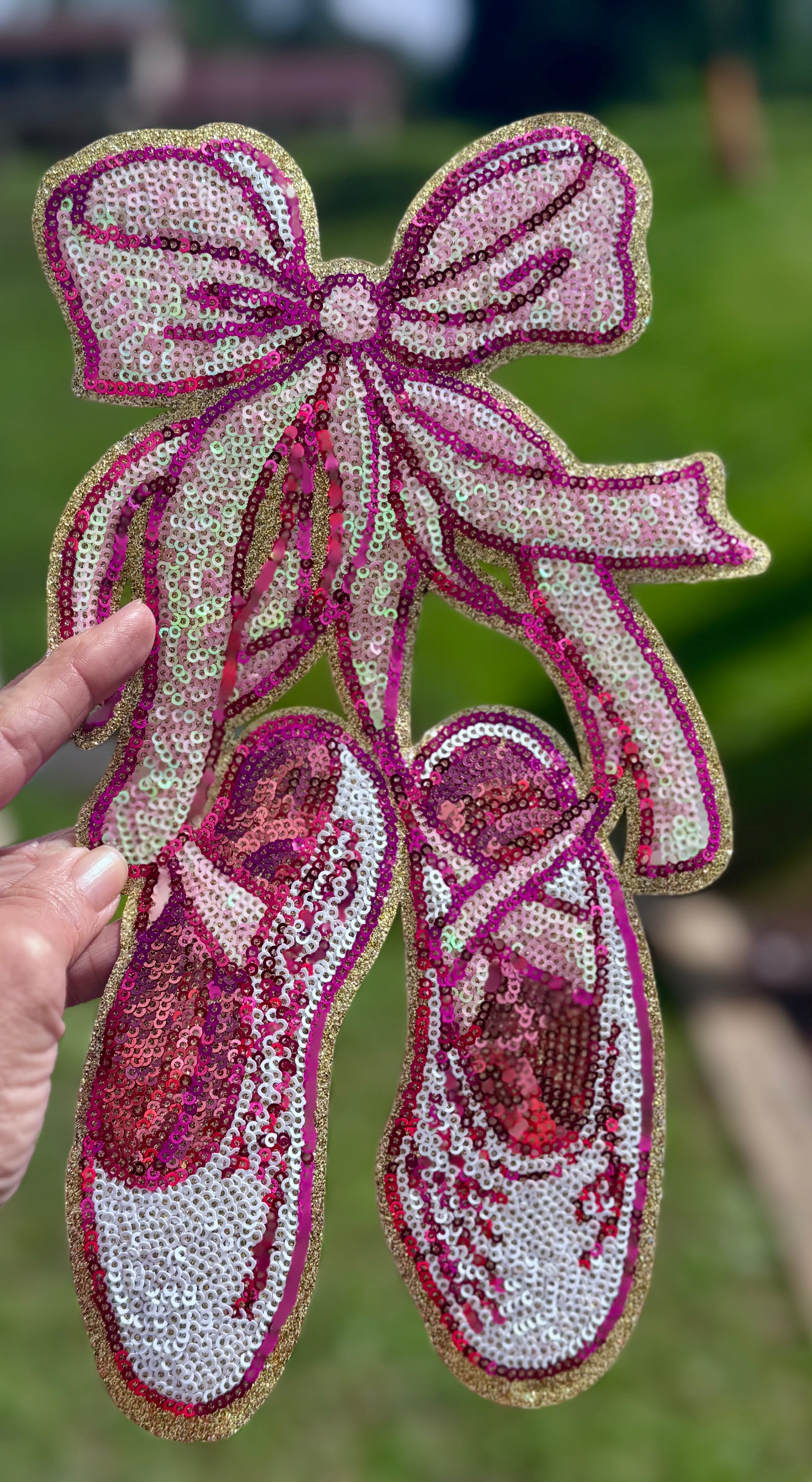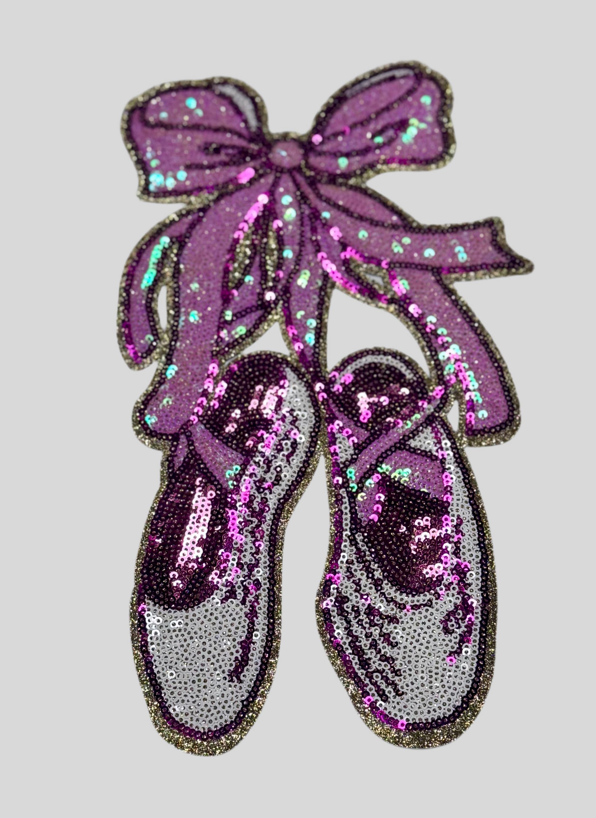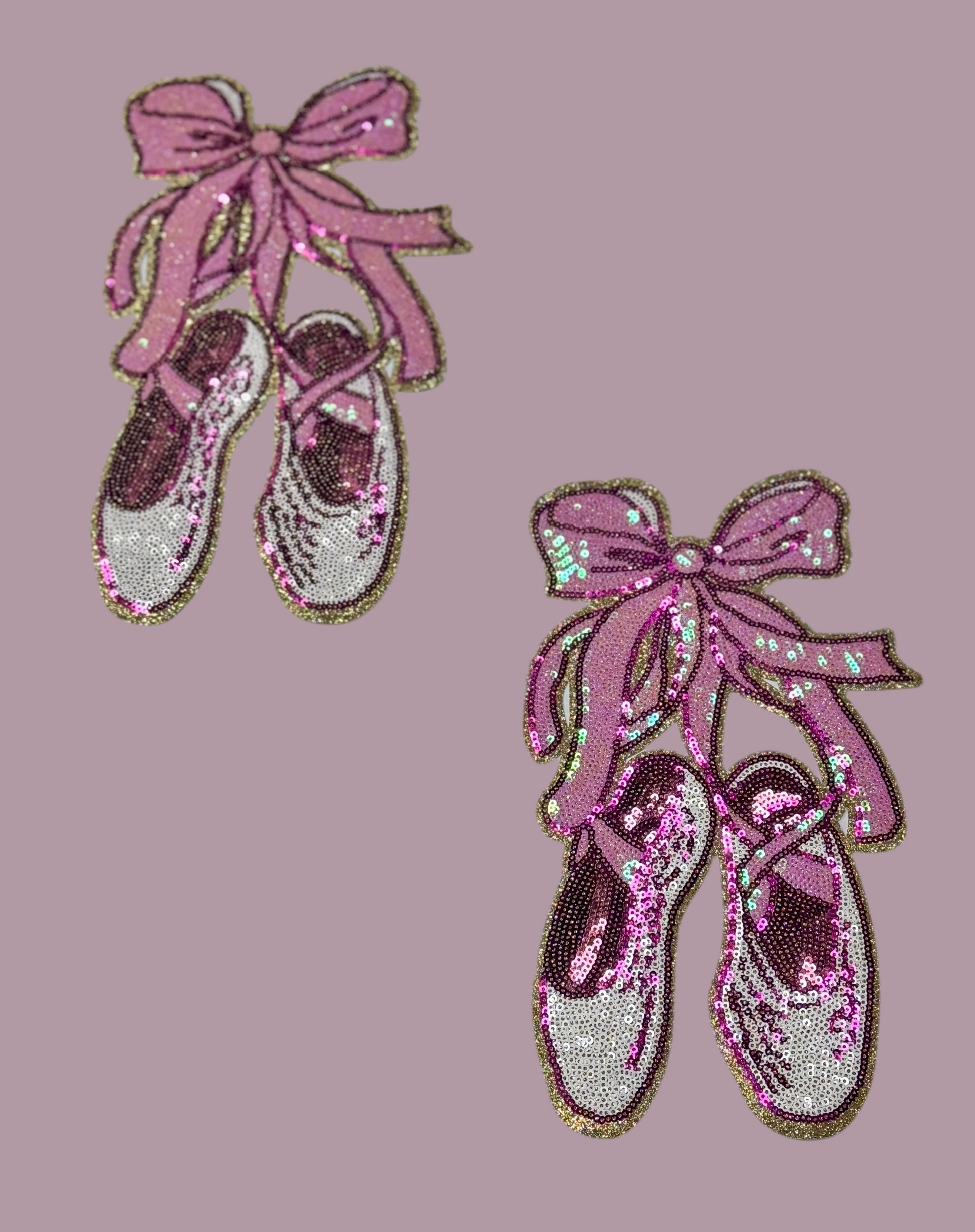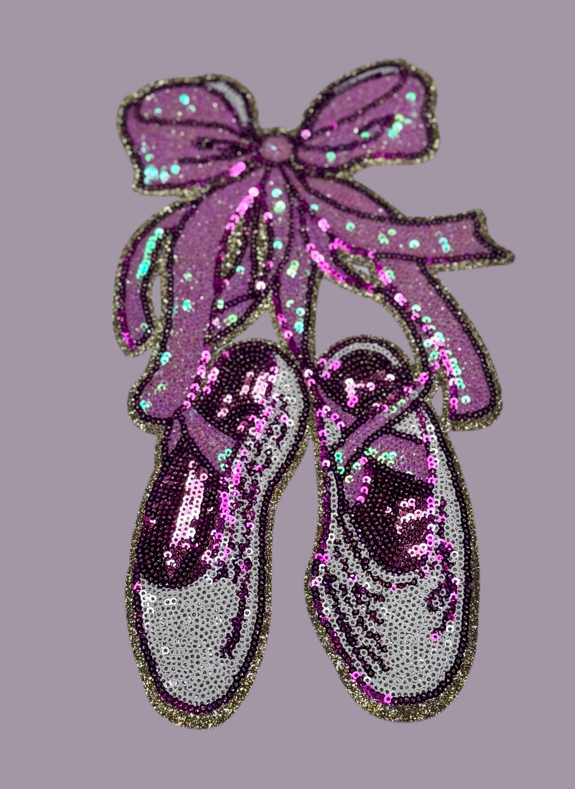 Dance Sequin Patch, Ballet Slippers with Bow, Pointe Shoes, Dance patch, iron on patch, sequin patch, pink patches, DIY
