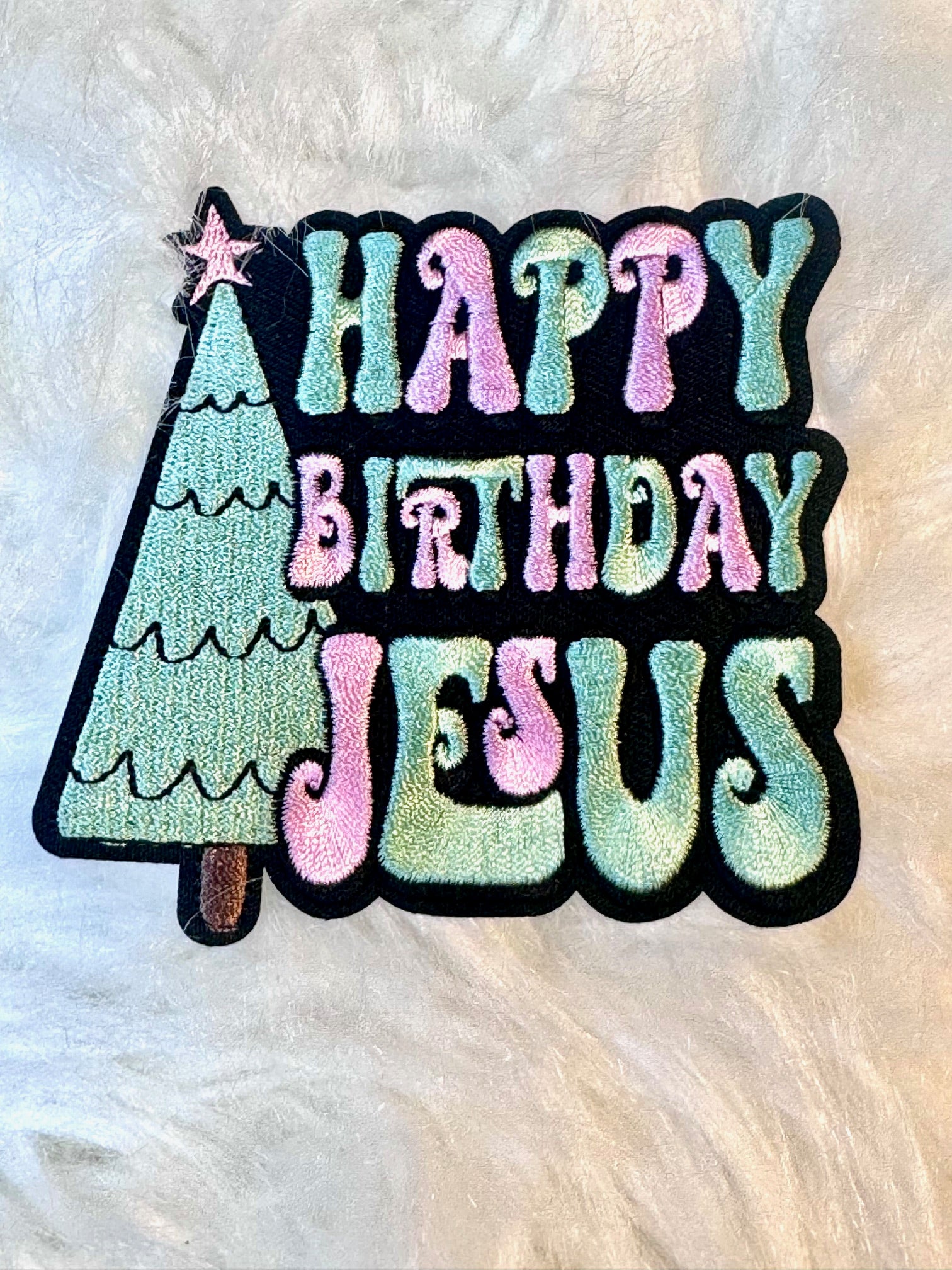Happy Birthday Jesus Patch, Embroidered Patch, Christmas Patch, Trucker Hat Patch, Religious Patch, Iron on Patch, DIY Patch, Patch for Hat, Holiday patch