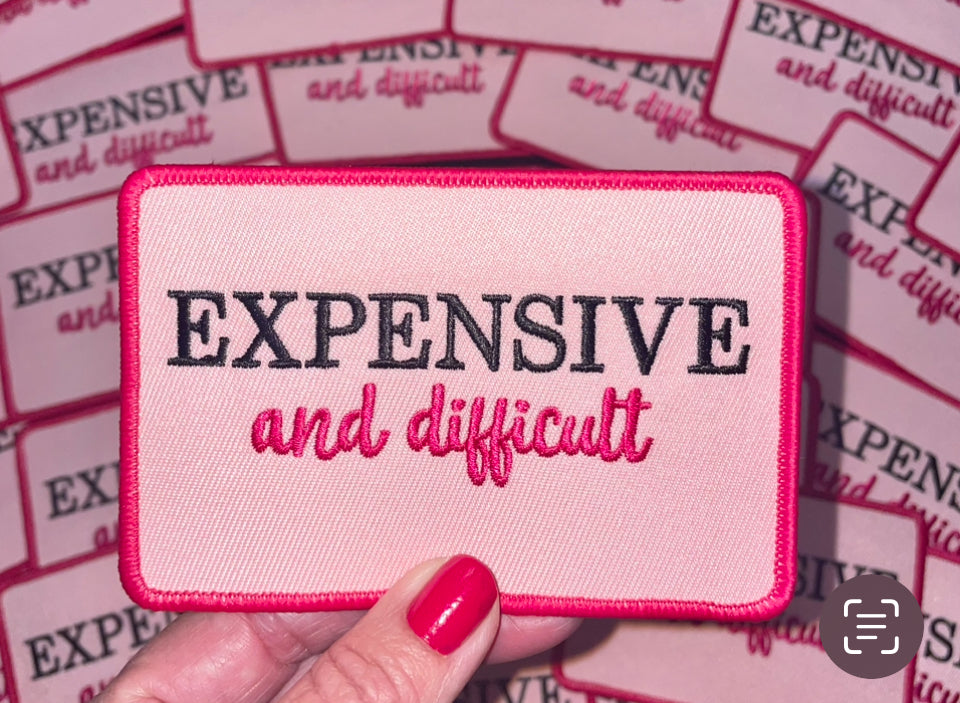 Expensive and difficult Patch, Trucker Hat Patch, Boujee Patch, Trendy Patch, Girly Patch, Embroidered Iron on Patch