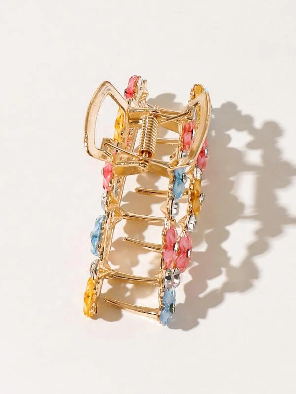 This is a perfect flower/jeweled hair claw to compliment any of your outfits. With this one you are able to dress it up or pair with your favorite blue jeans.