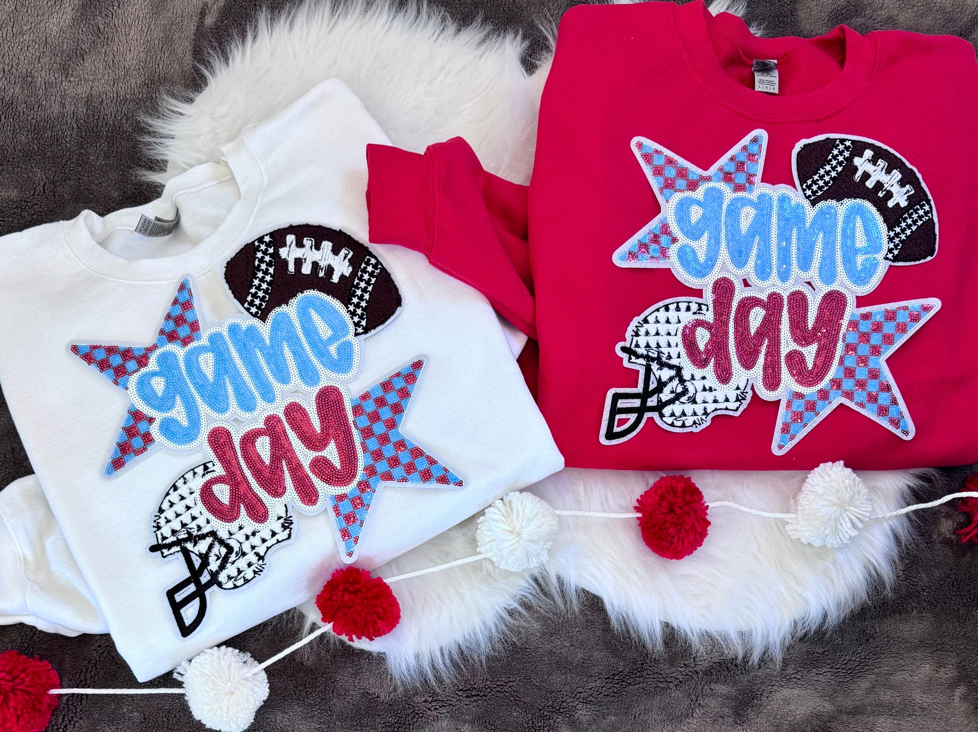 Game Day Patch, 11 in Patch,Football Patch, Red and Blue Patch, Sequin Football Patch, Sports Patch, Sequin Patch, Iron on Patch, DIY