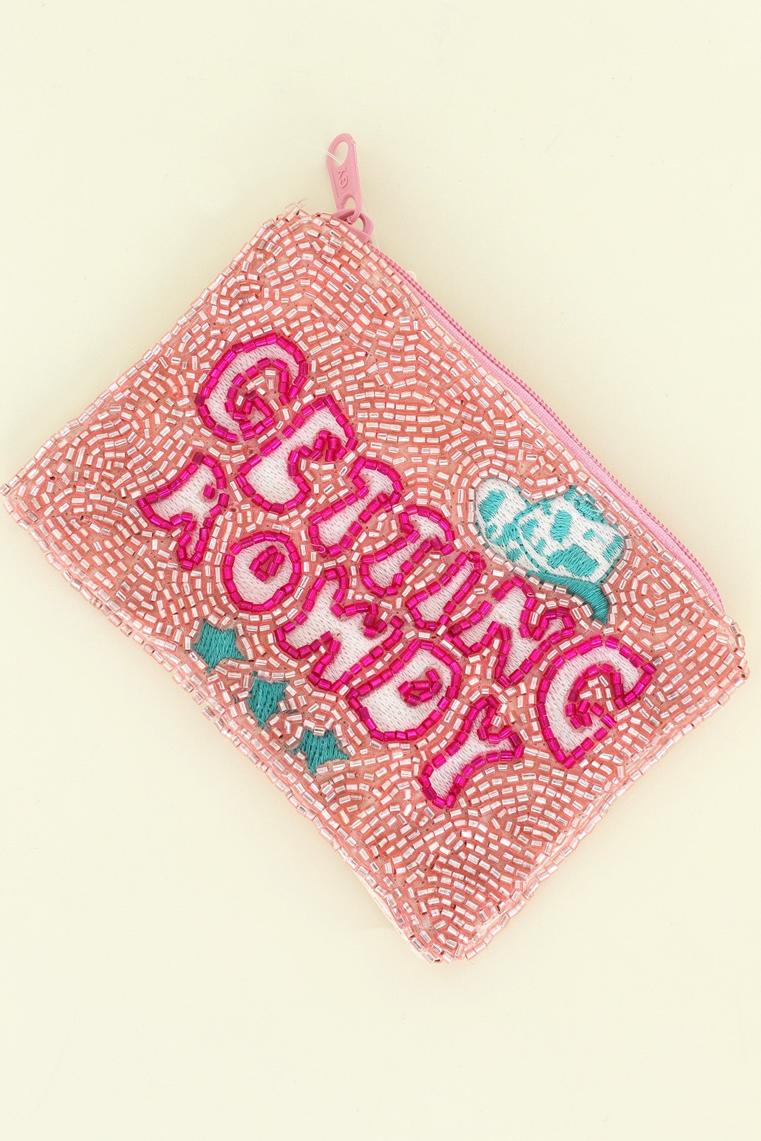 GETTING ROWDY COWBOY HAT BEADED ZIPPER COIN BAG/PURSE/WRISTLET