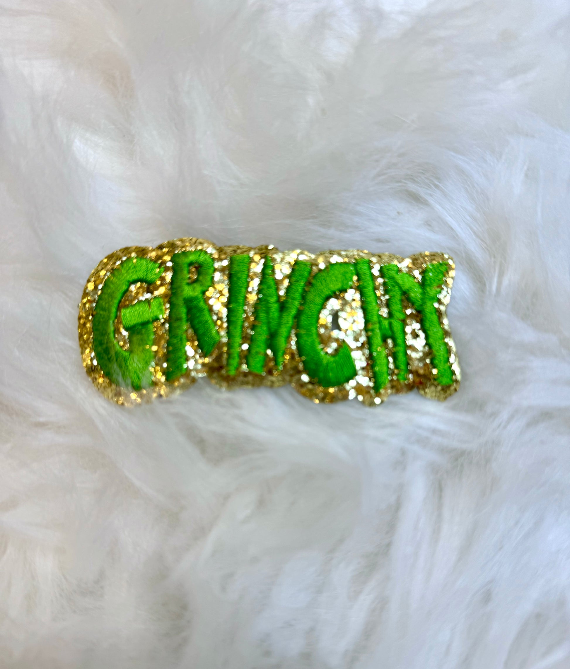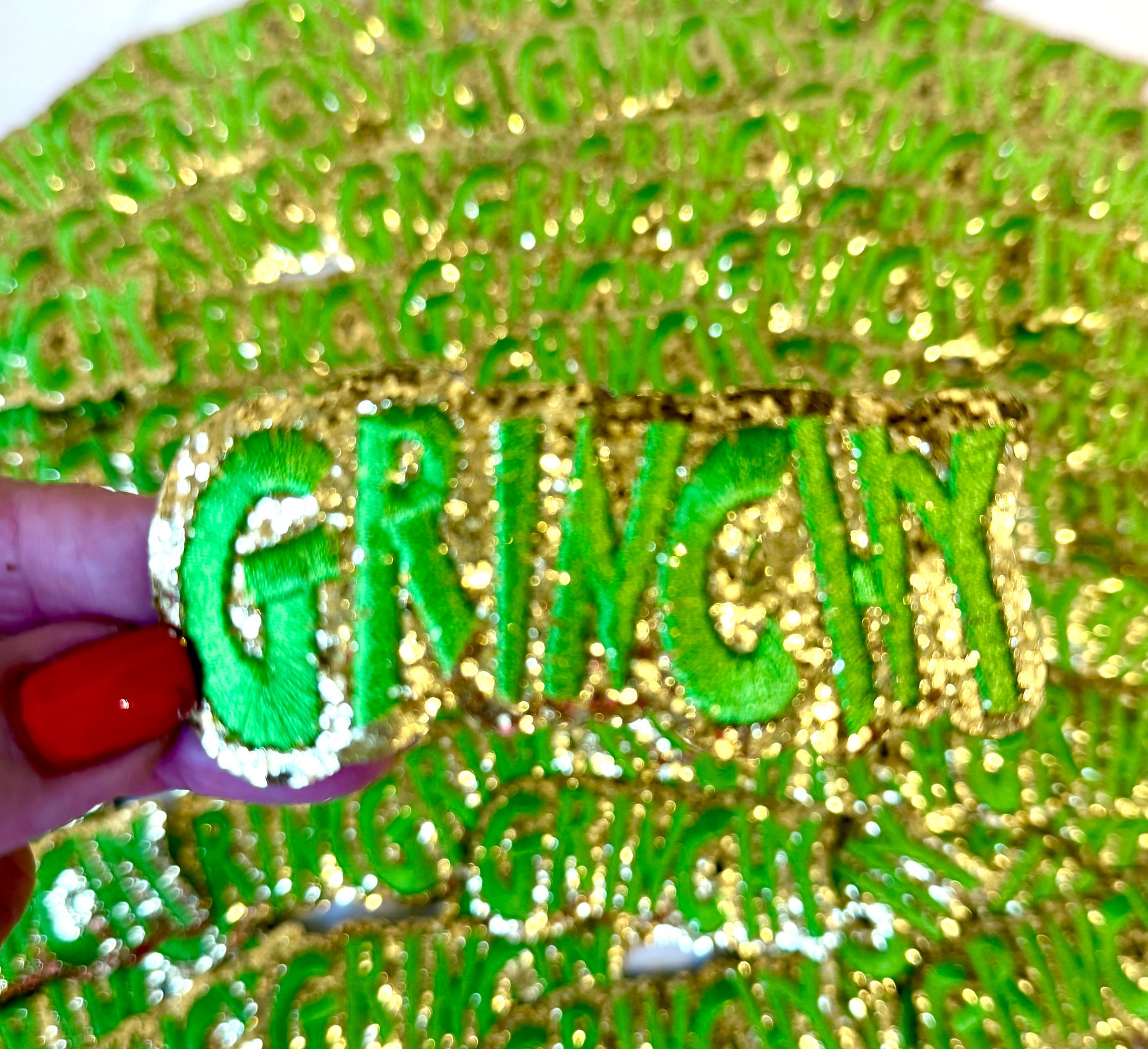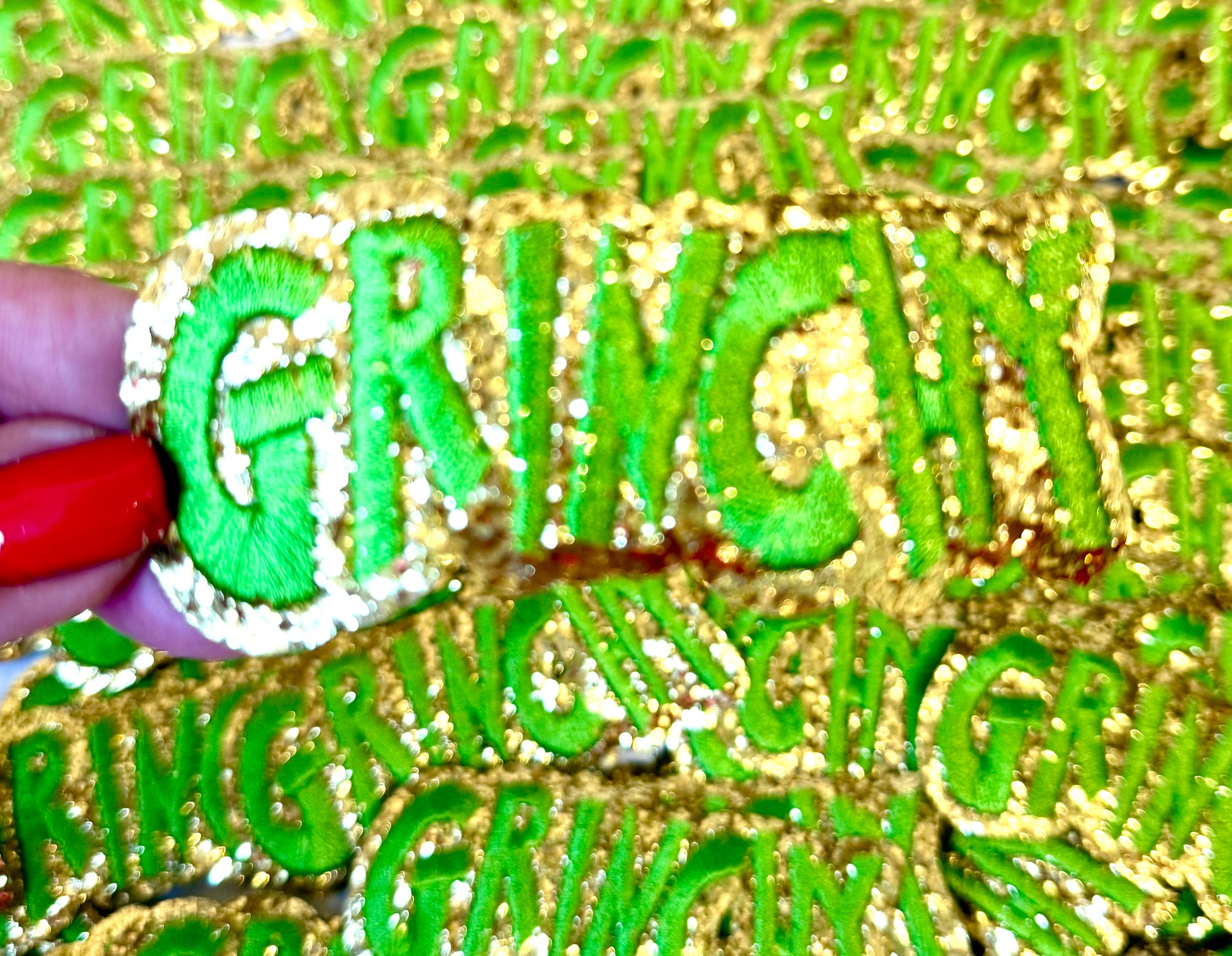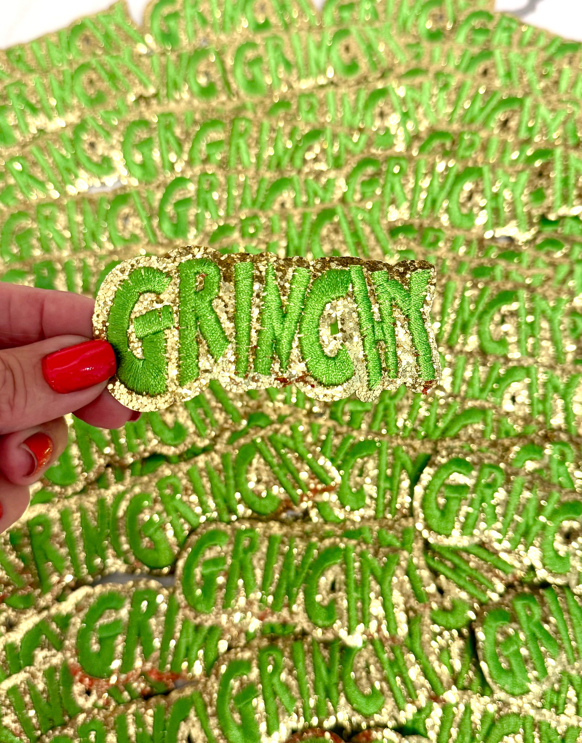 Embroidered and Glitter Patch, Grinchy Patch, Trucker Hat Patch, Christmas Patch, Iron on Patch, DIY Patch, Patch for Hat