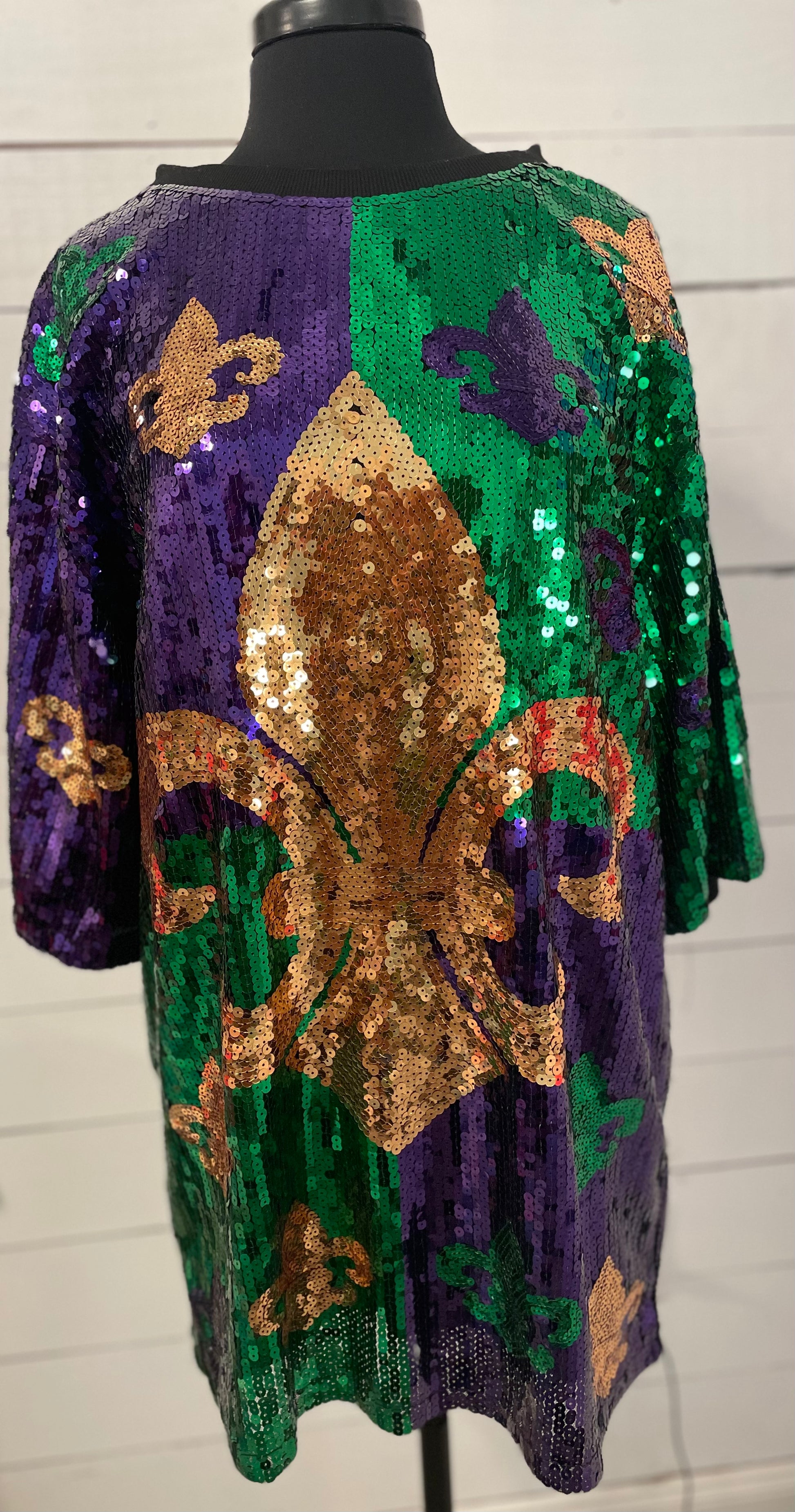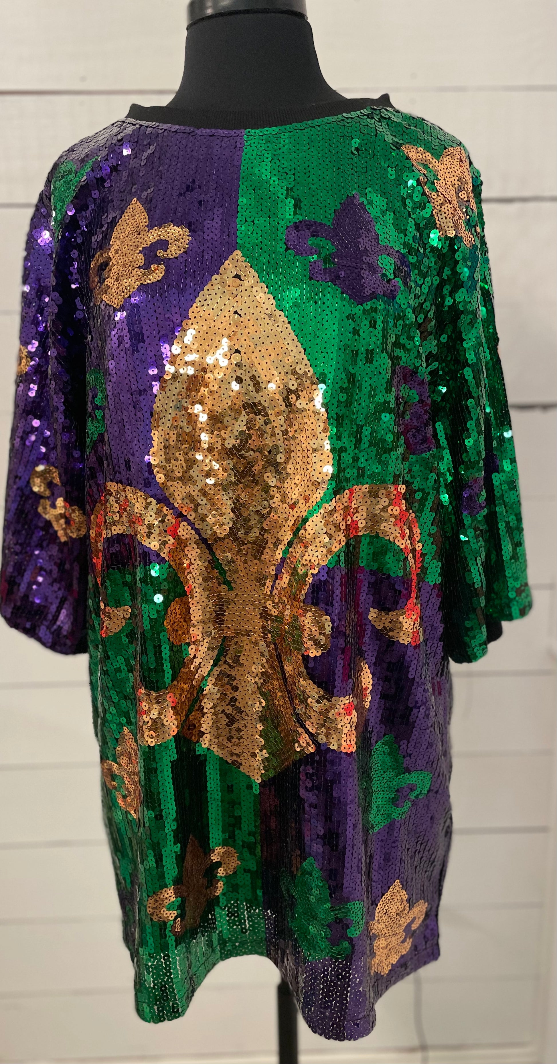 Mardi Gras Sequin Fleur De Lis Dress, Mardi Gras Party Dress, Sequin Dress
