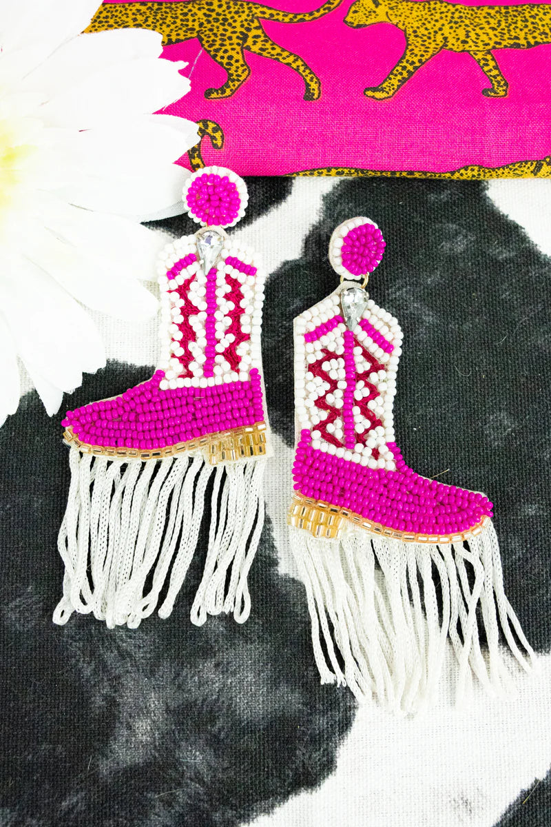 Nashville Hot Pink Boot with Tassels Jewelry/ Bride /Girls Trip