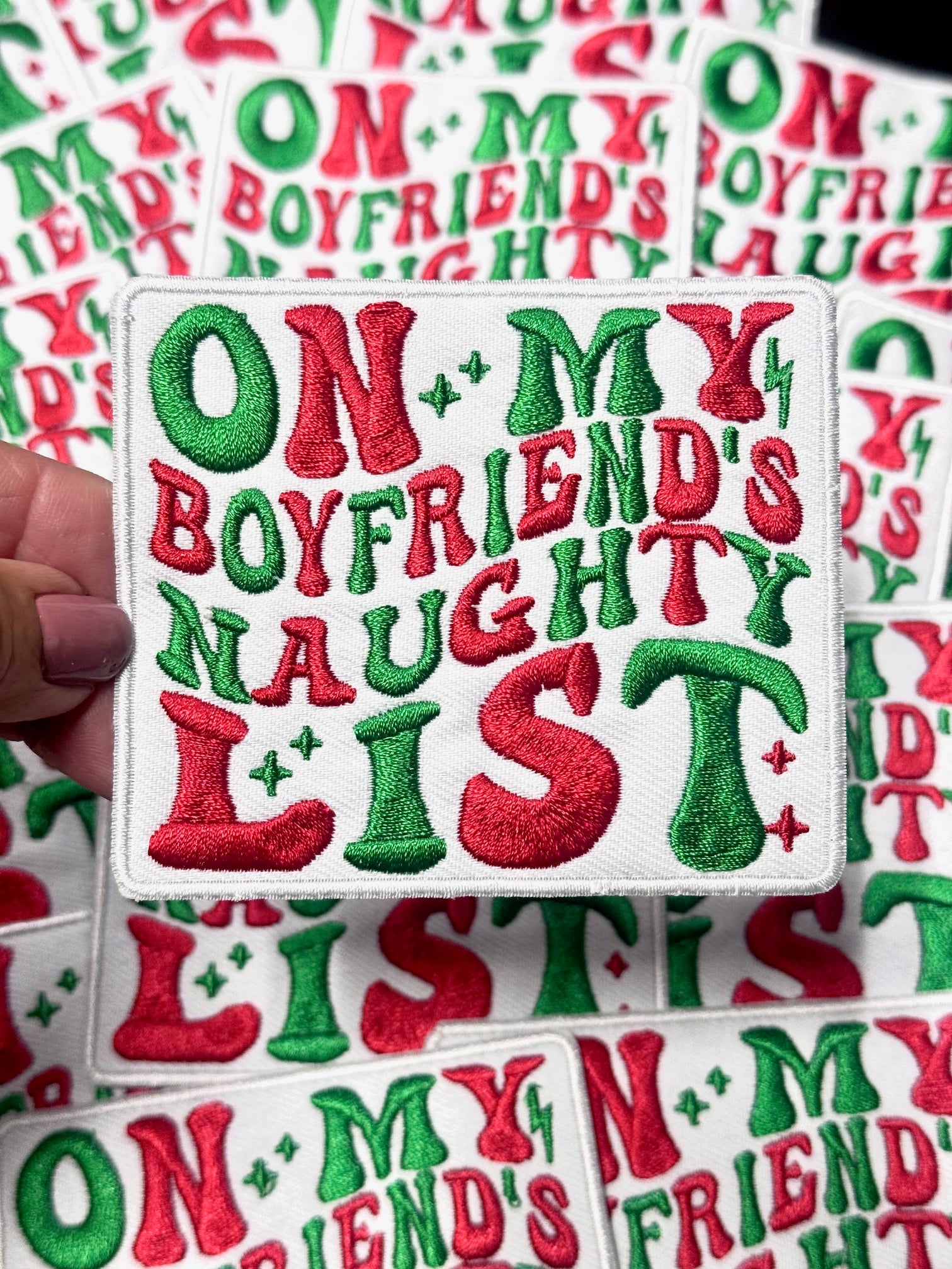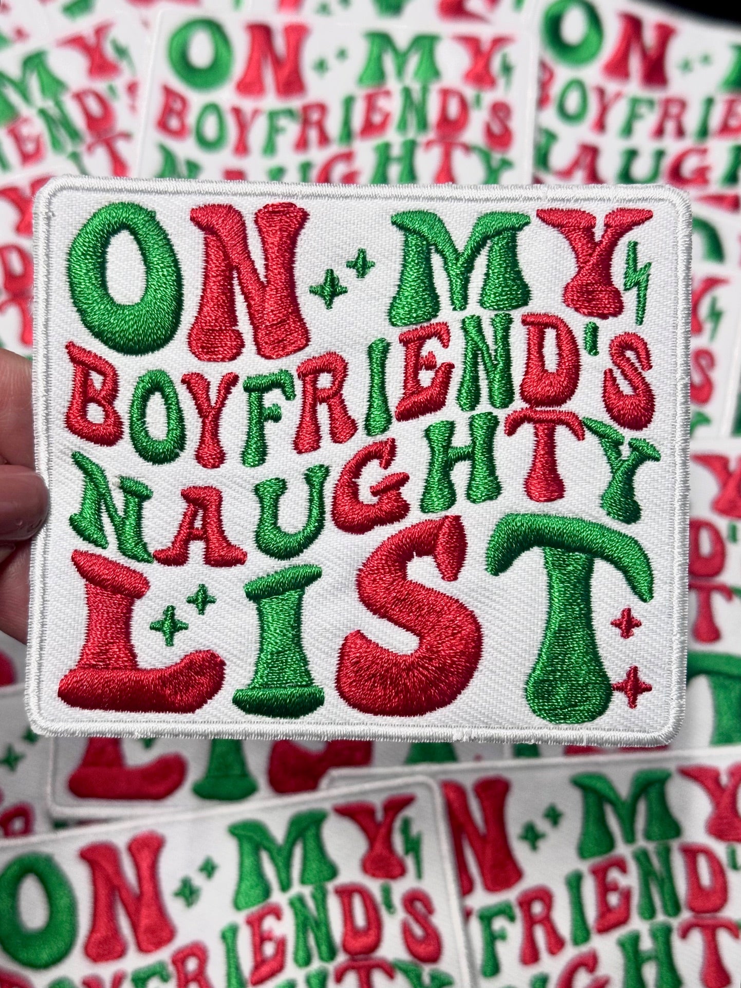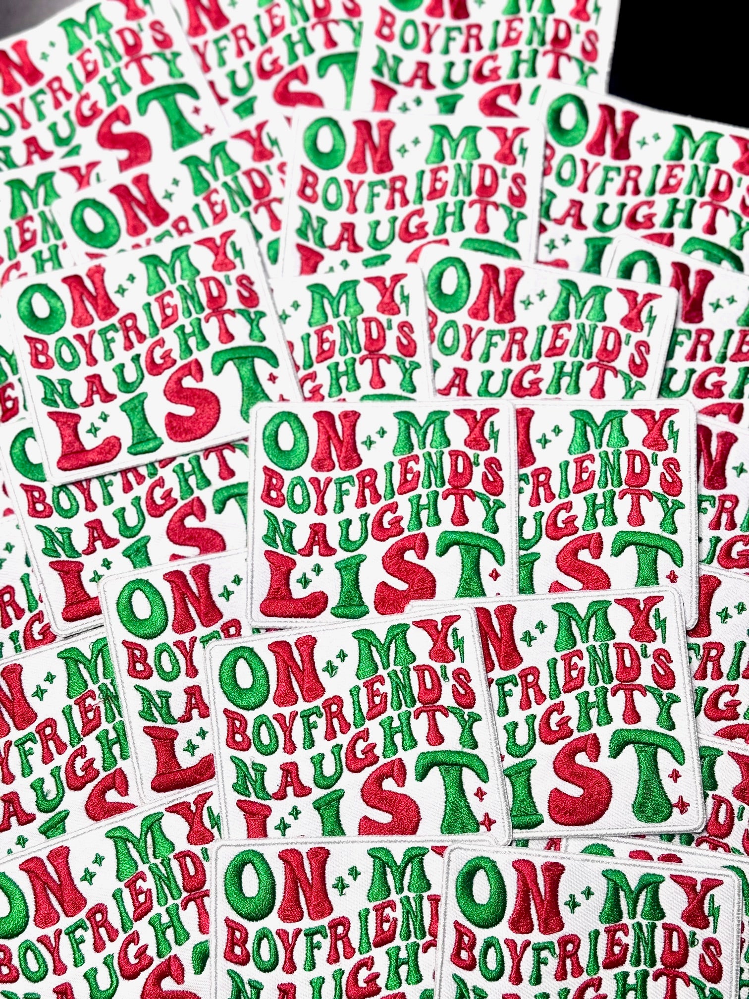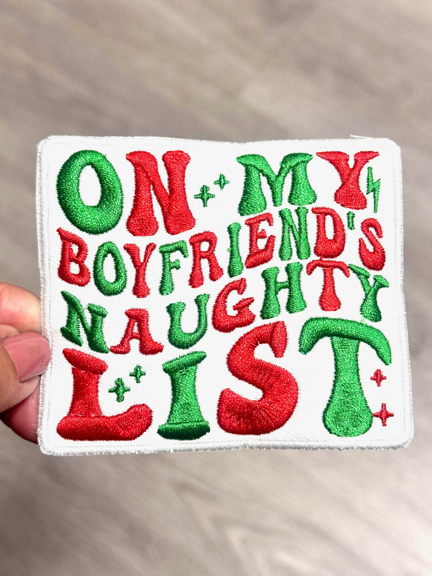 Naughty List Patch, Christmas Patch, Custom 3.5" Patch, Trucker Hat Patch, On My Boyfriend's Naughty List Patch, Iron on Patch, DIY Patch