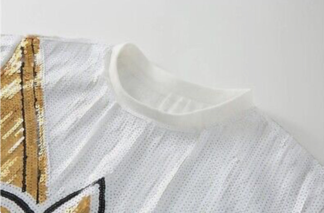 New Orleans Saints, White and Gold Sequin Jersey Dress, NFL Sequin Dress, Game Day Dress, New Orleans Attire