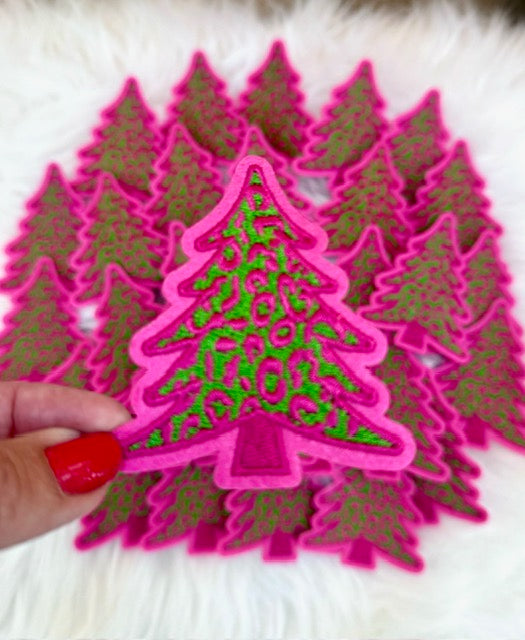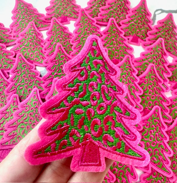 Christmas Tree Patch, Pink Patch, Embroidered Patch, Trucker Hat Patch, Christmas Patch, Iron on Patch, DIY Patch, Patch for Hat, Holiday patch