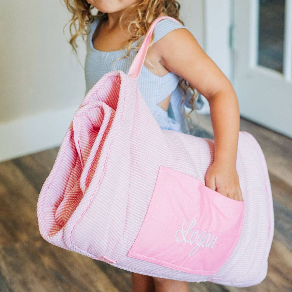 Sugarbee Clothing Pink Seersucker Nap Mat/Back to School, Toddler Nap Mat, Boys, Girls Nap mat, Kids Sleep Mat for School, Seersucker, Daycare, Pre-k, Preschool, Personalized, Embroidered, Pink