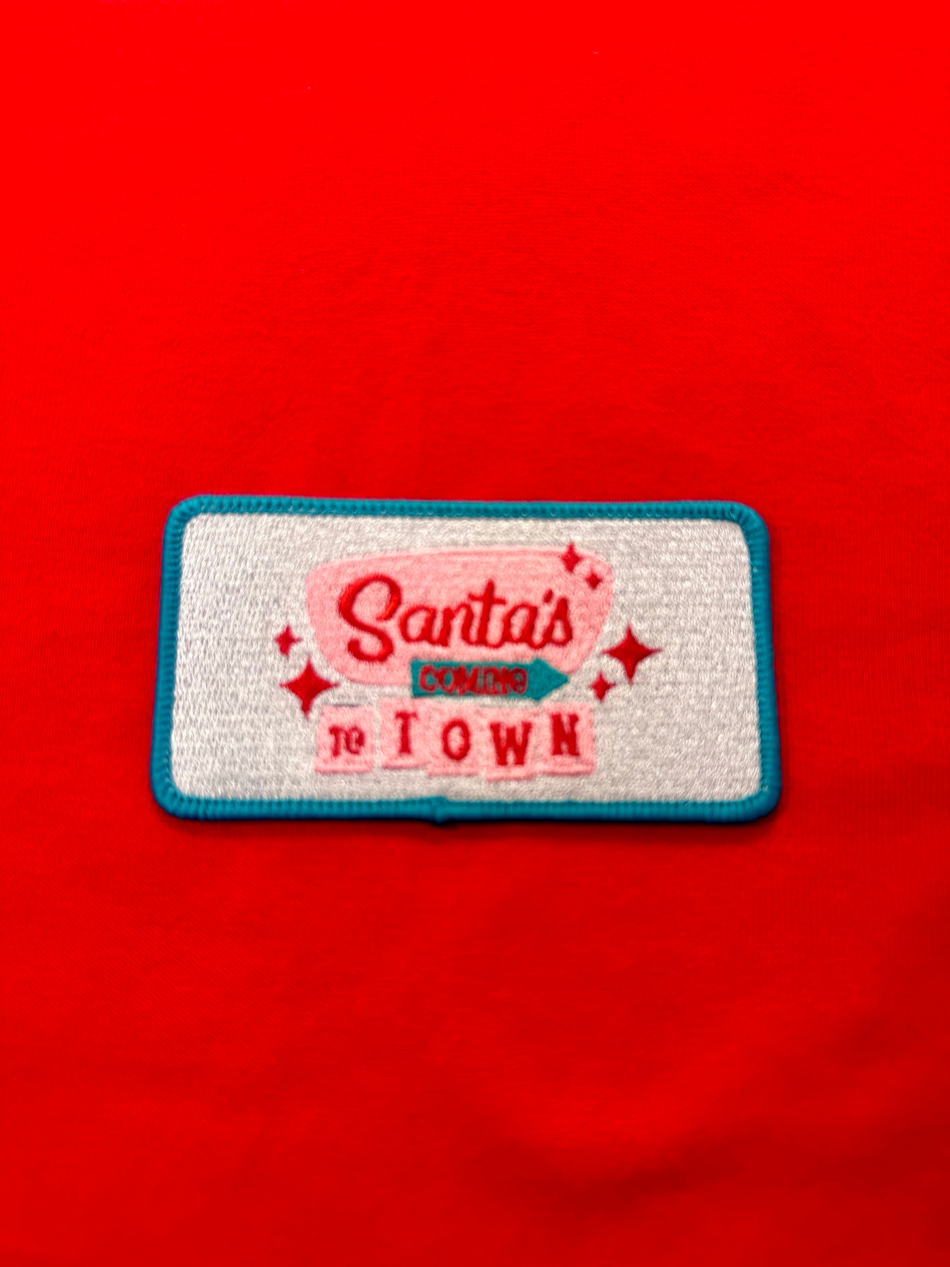 Santa's Coming to Town Patch, Christmas Patch, Pink Christmas Patch, Embroidered Christmas Patch, Christmas Hat Patch, DIY