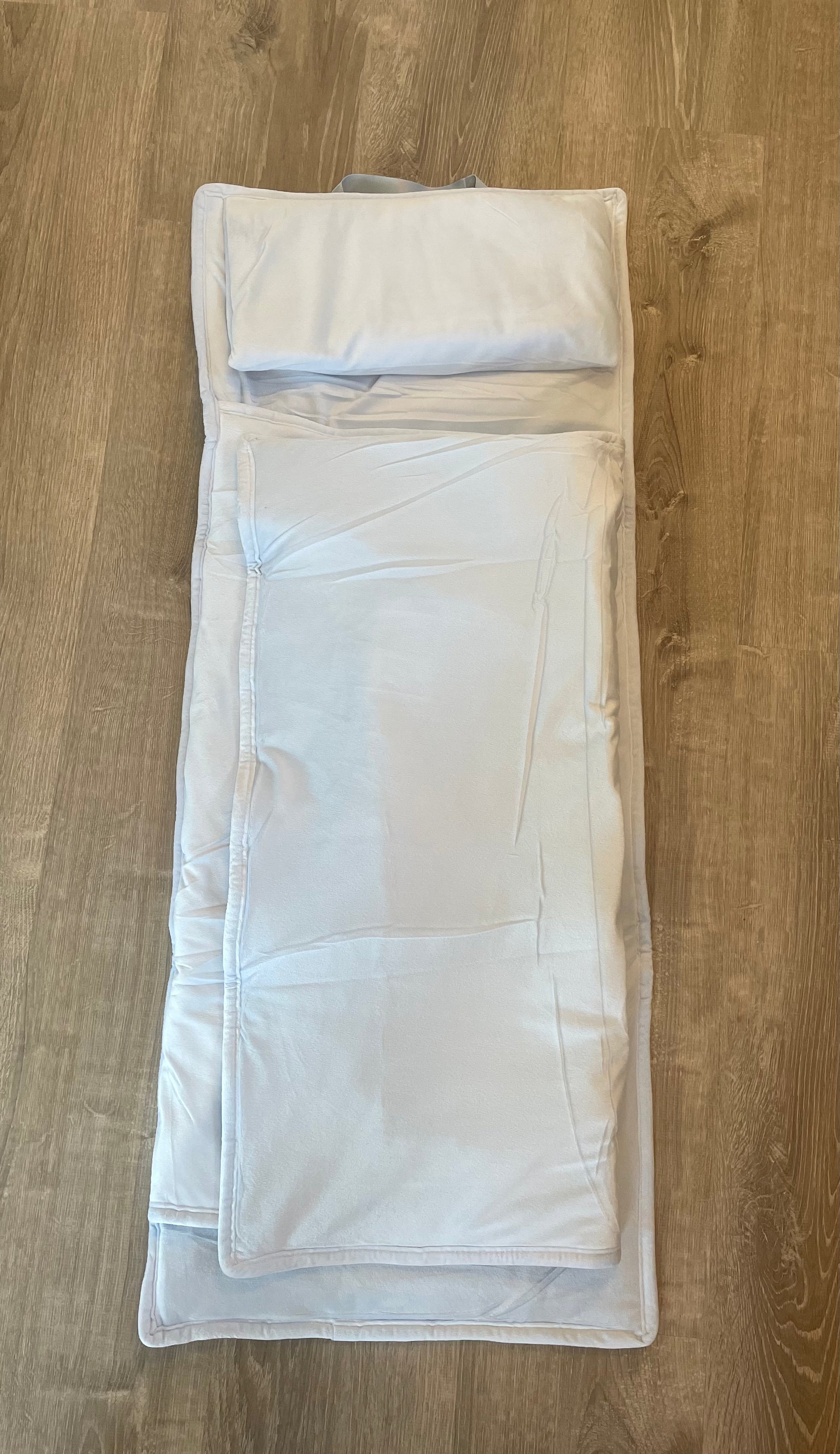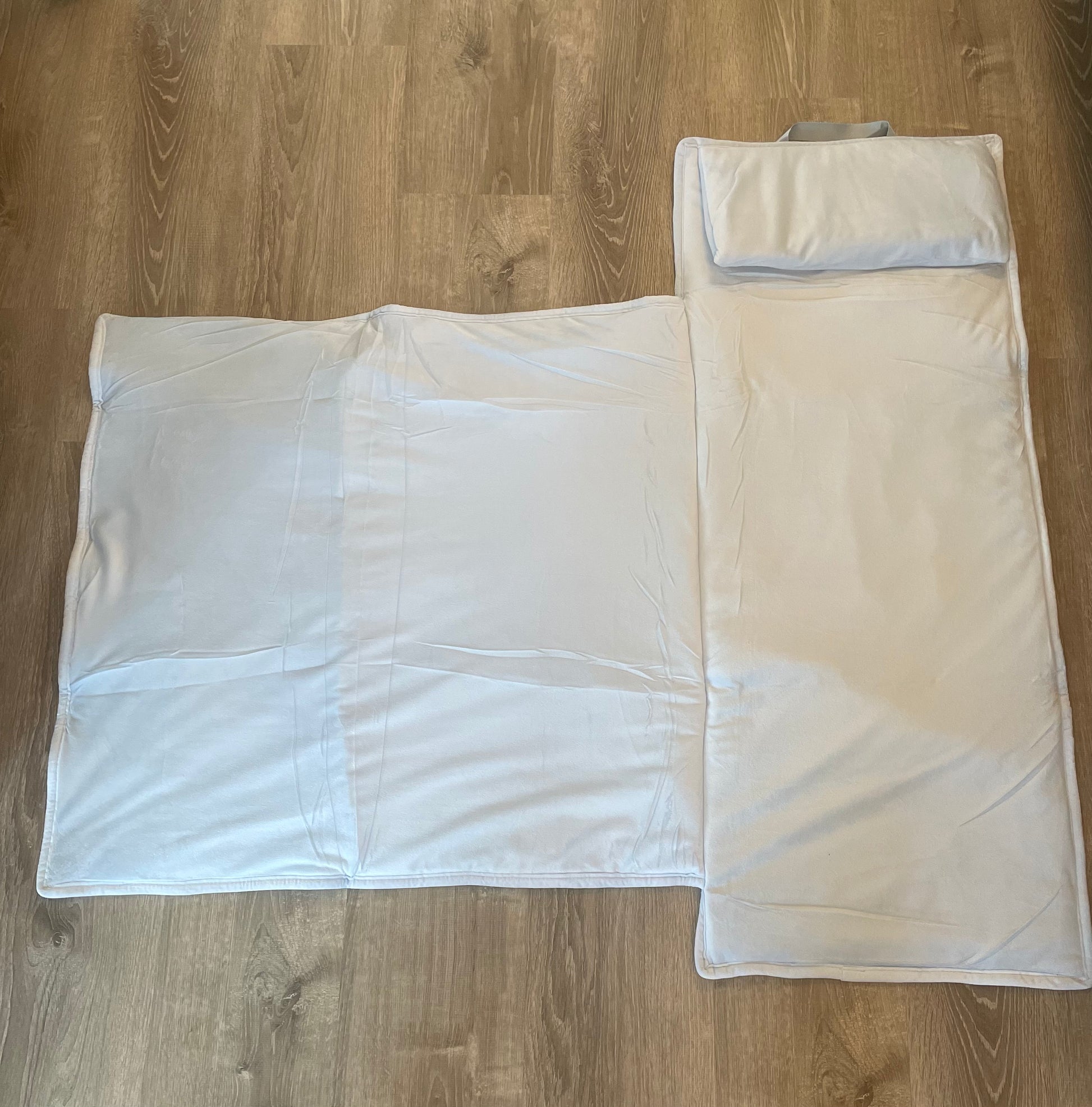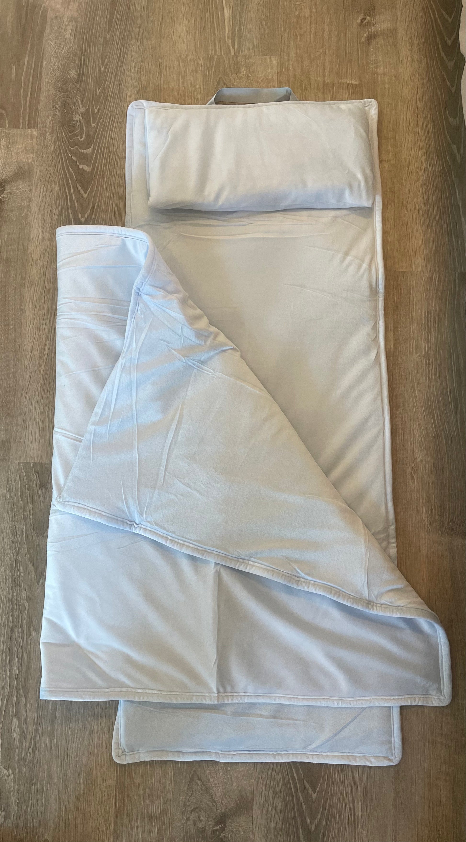 The seersucker nap mat is complete with blanket, pillow, and pad and are large for tall kids. Each nap mat is complete with a removable pillow and attached fleece blanket. This is the perfect gift for any preschool child or for a special trip to Grandma's house. IT IS A COMPLETE SET.