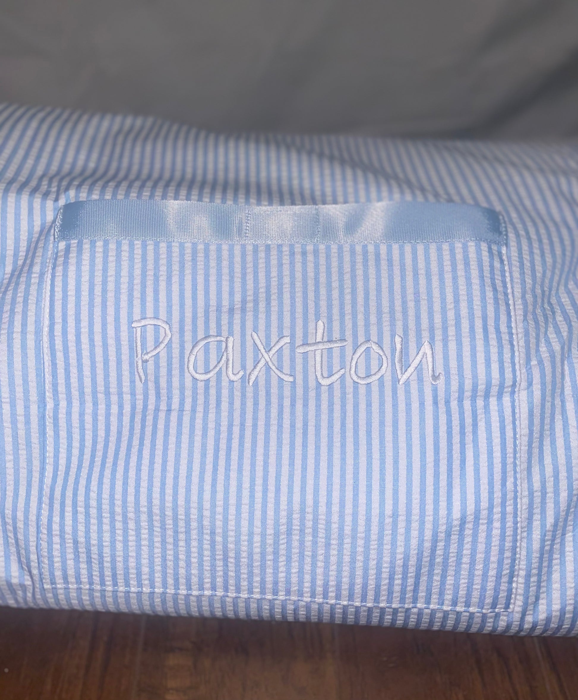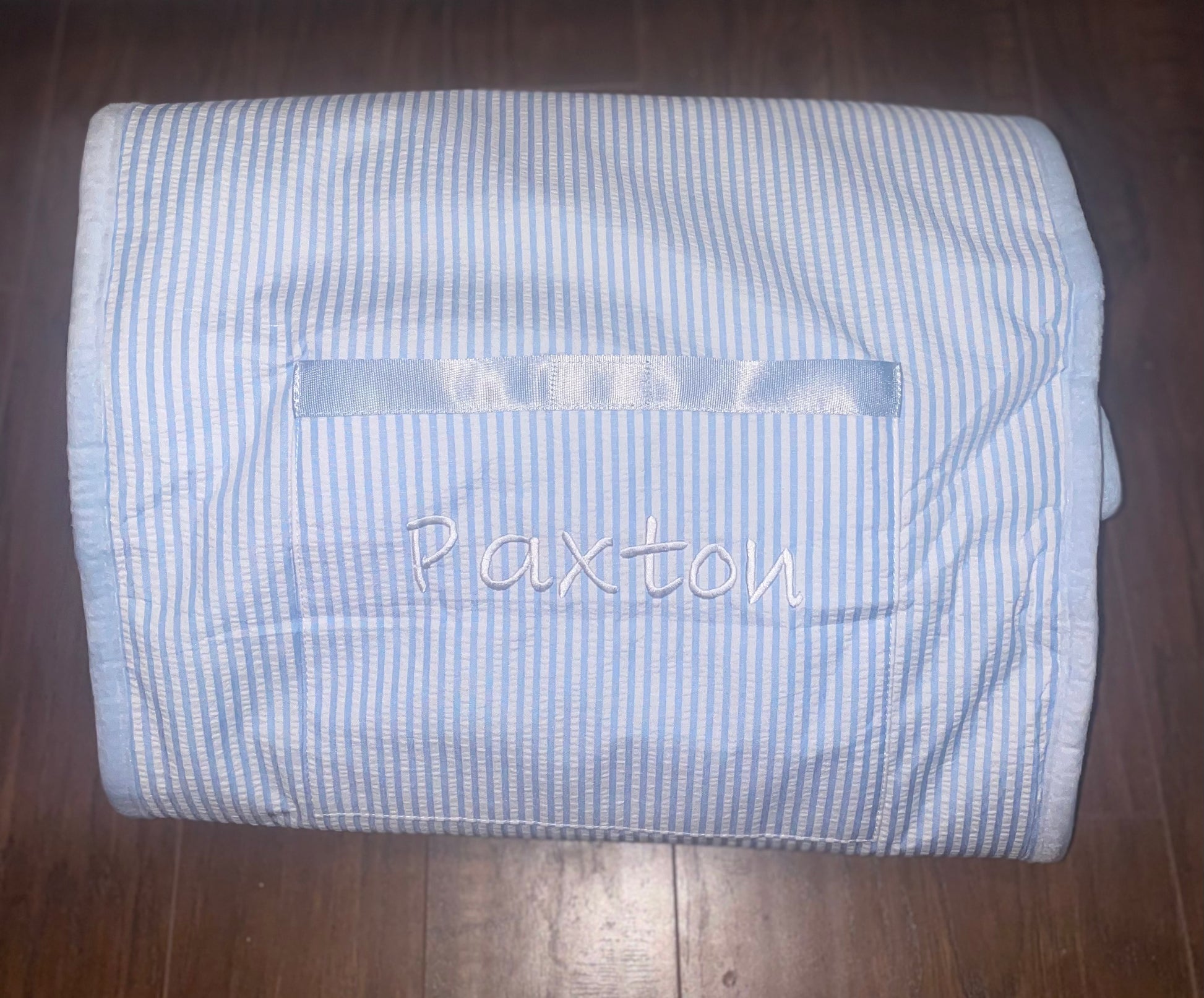 Seersucker Light Blue Nap Mat,Toddler Nap Mat, Boys/Girls Napmat, Back to School/ Kids Sleep Mat for School, seersucker, Daycare, Pre-k, Preschool, Personalized, Embroidered, light Blue