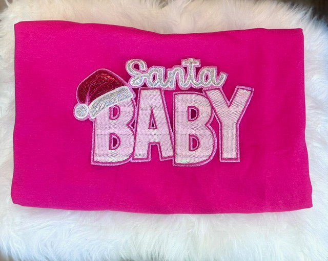 Sequin Santa Baby, 11 inch patch, Christmas Patch, Iron On Patch, Holiday Patch, DIY Patch, Sweatshirt Patch. Pink Patch