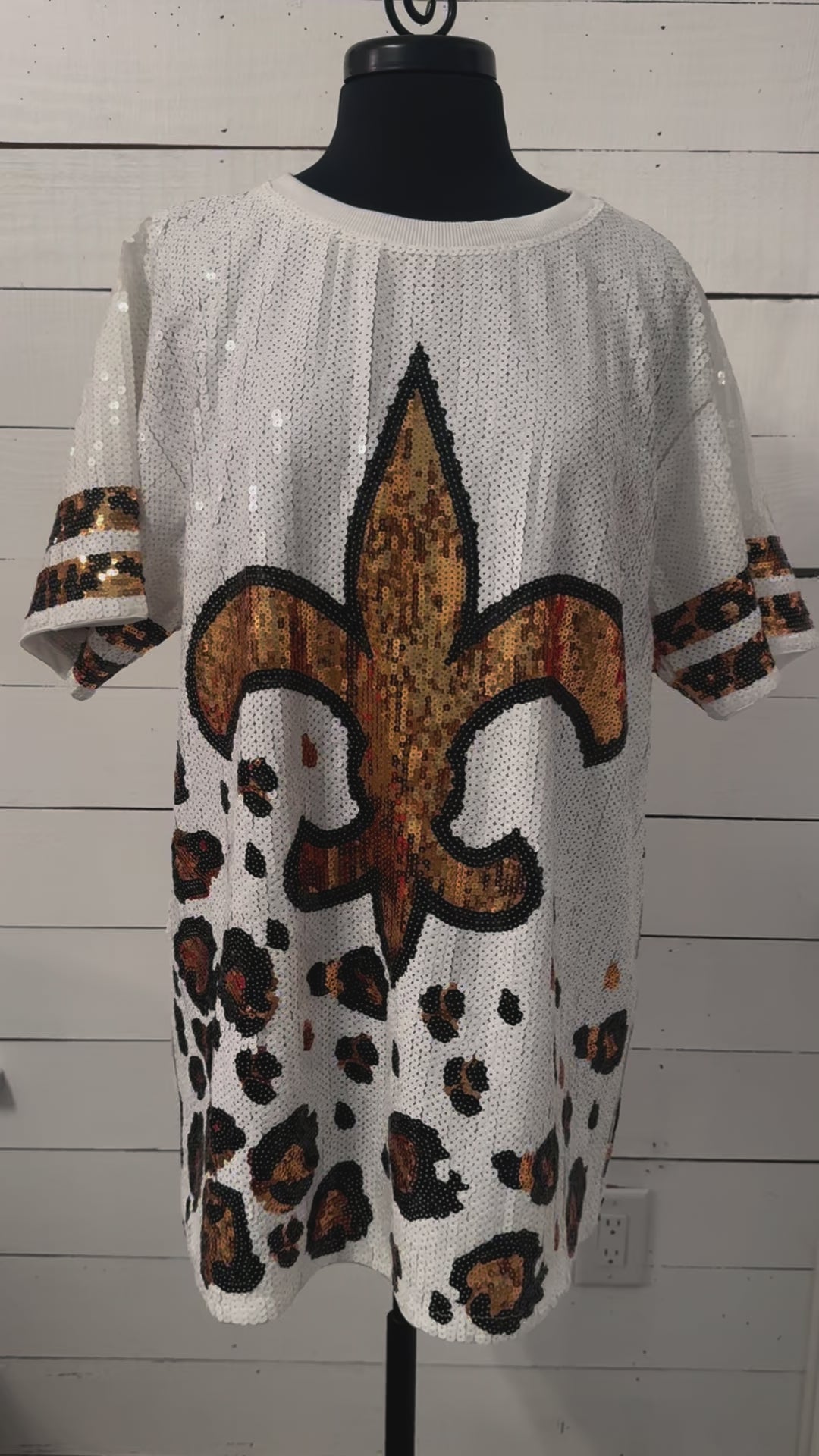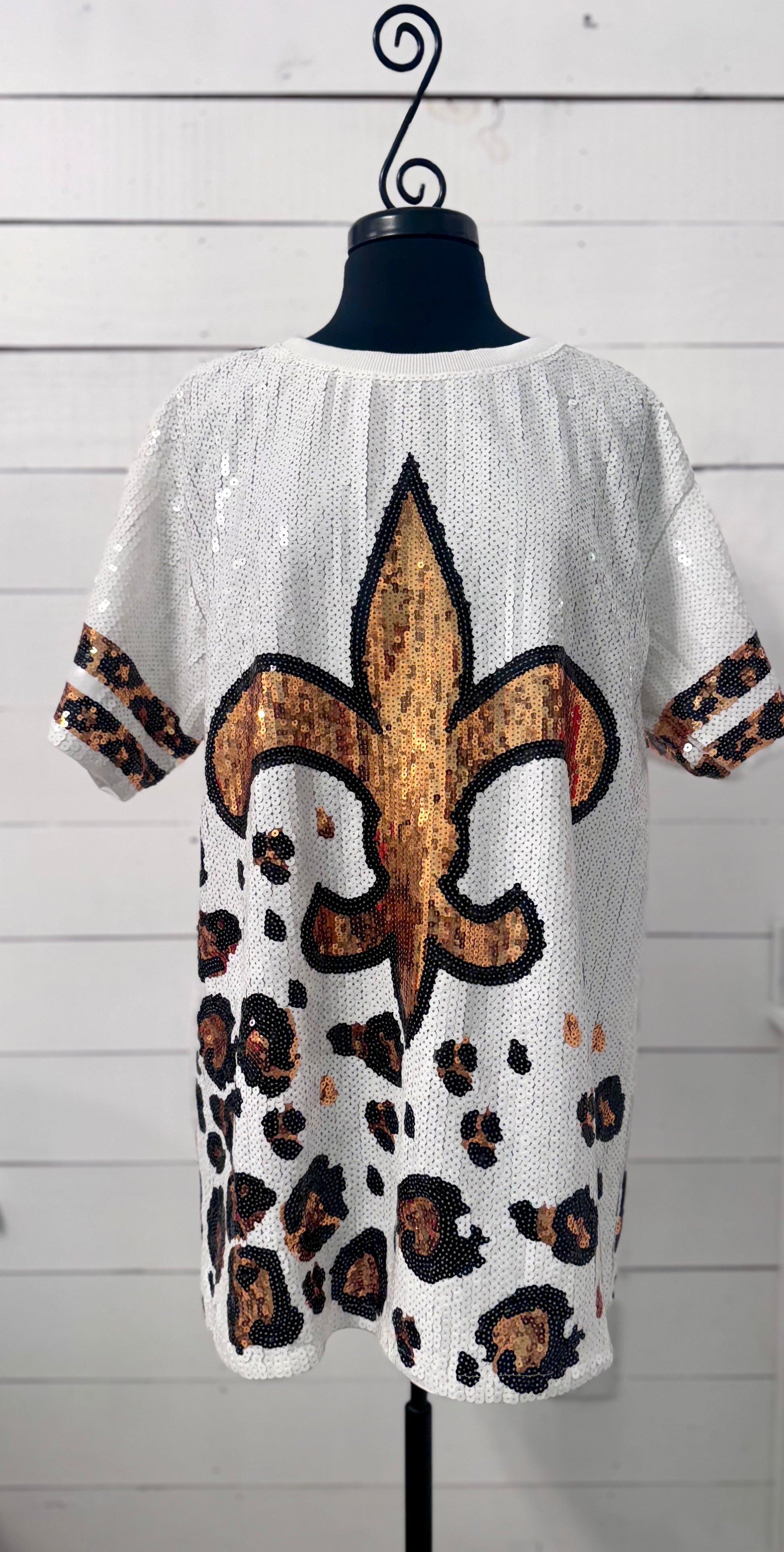 Exclusive Sequin Jersey Dress, Leopard Fleur De Lis, White and Gold Leopard Sequin Jersey Dress, Football Jersey Dress, Football Sequin Dress, New Orleans Attire