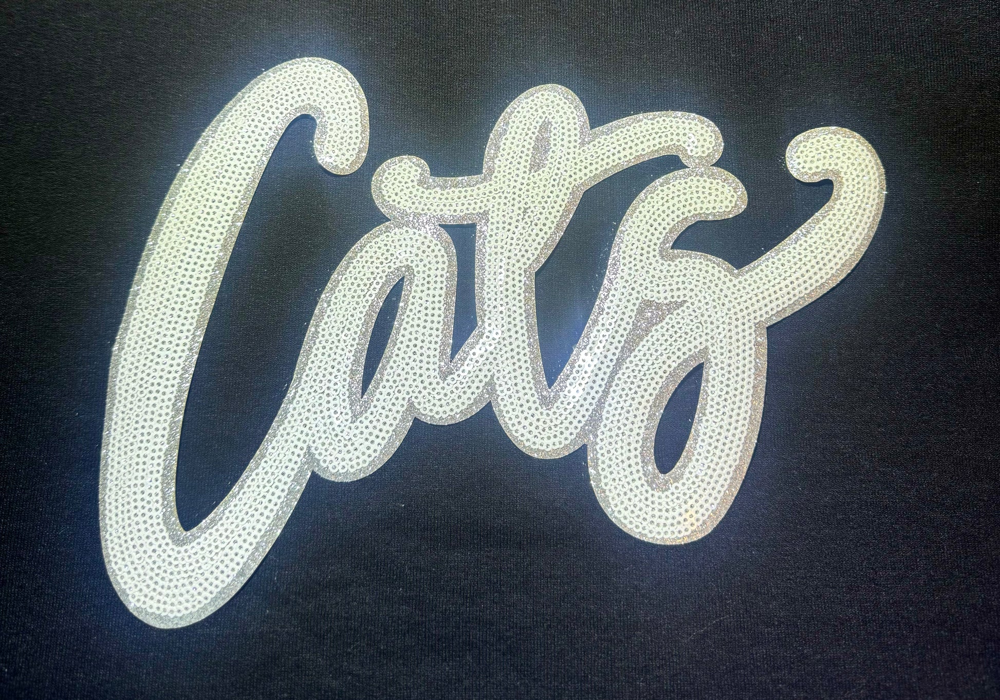 Sequin Cats Patch, Mascot Sequin Patch, Game Day Patch, DIY patch, Iron on Patch, Silver Glitter Backing