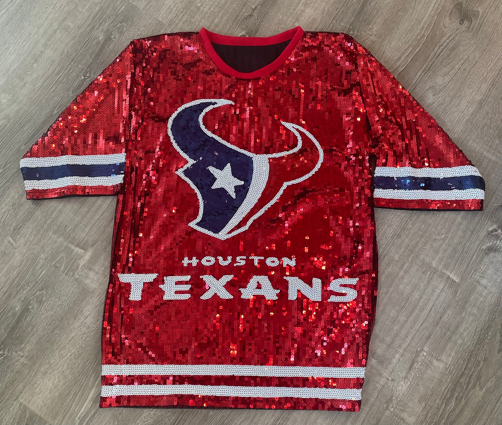 Sequin Houston Texans Jersey Dress - Red Houston Sequin Jersey Dress, NFL Sequin Jersey Dress, Texan attire