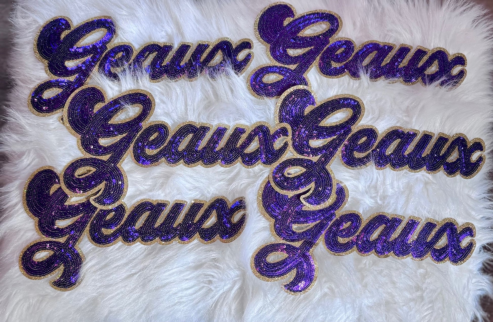 Sequin Script Geaux Patch: Gold Glitter Iron on Applique