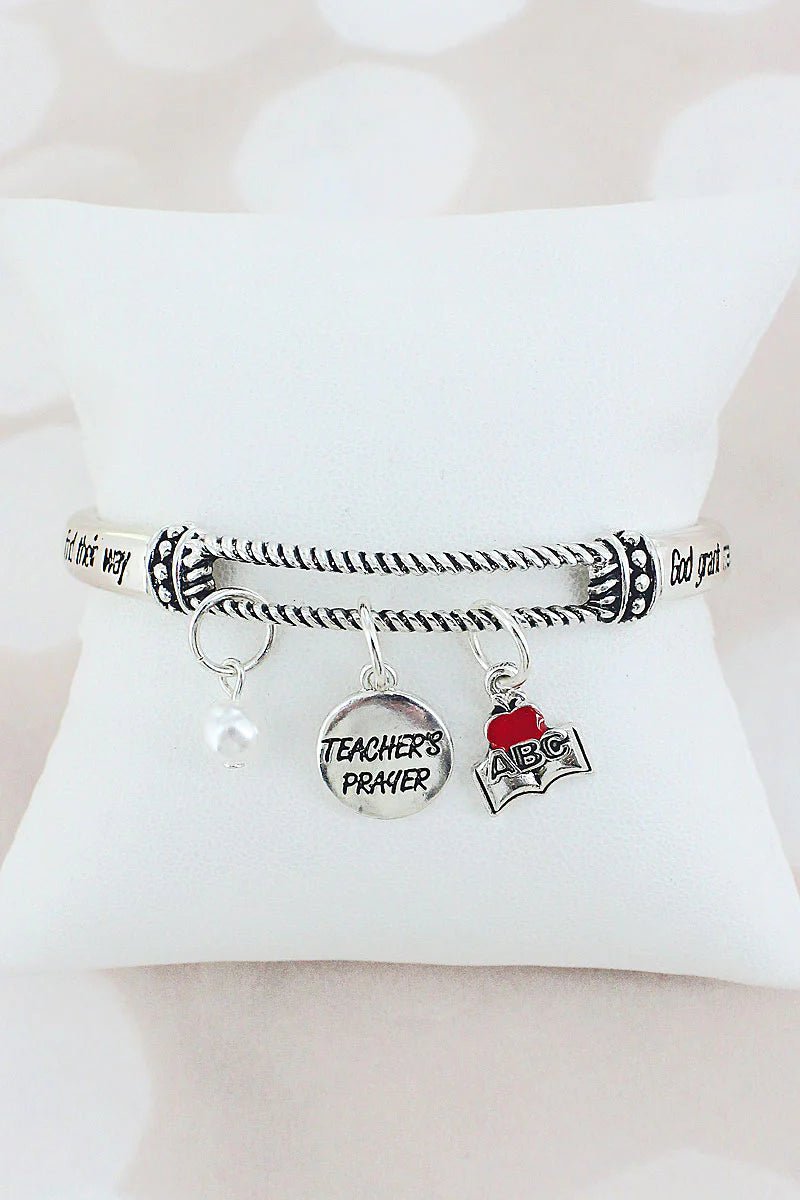 SILVERTONE TEACHER'S PRAYER CHARM BRACELET