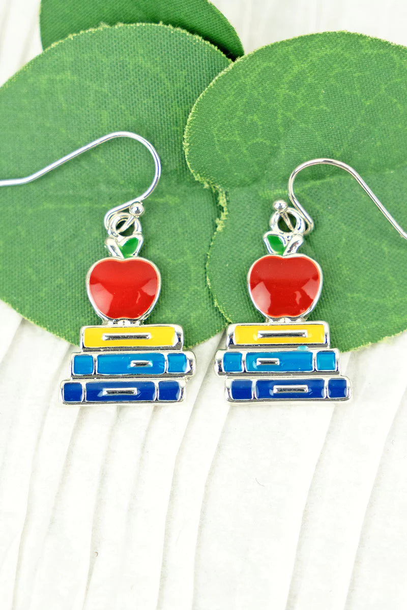 Stacked Books with Apple Dangle Jewelry/TEACHER